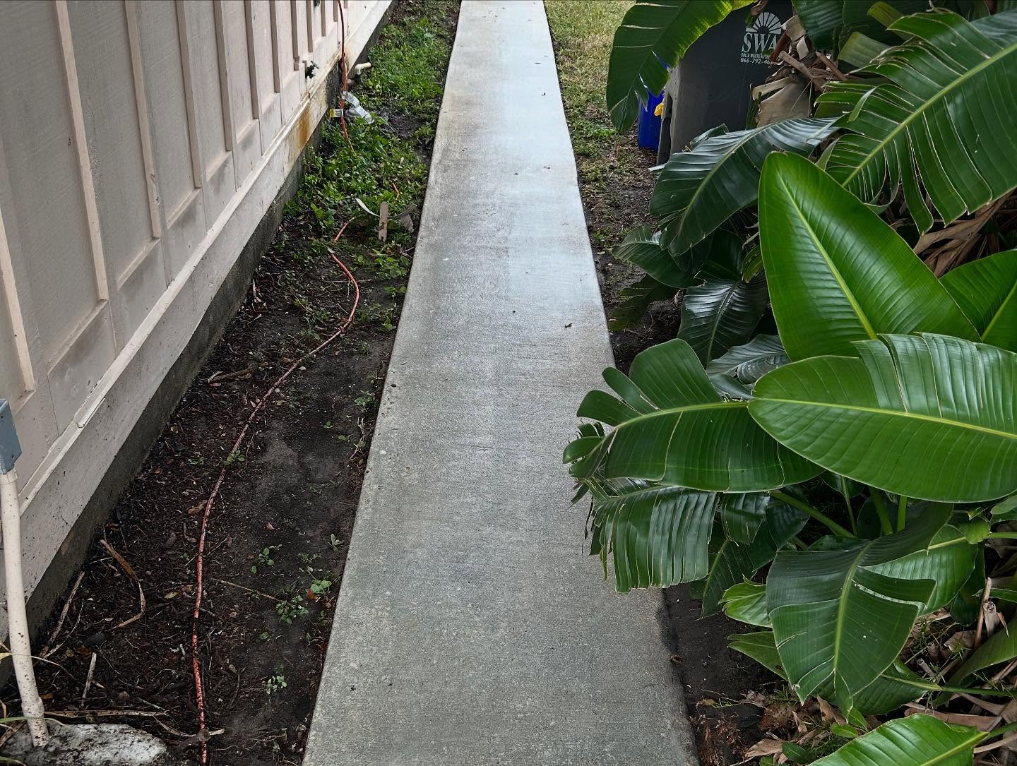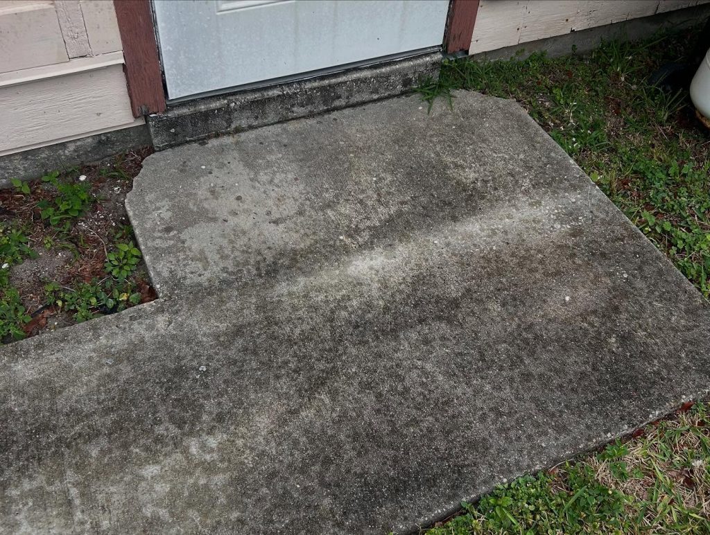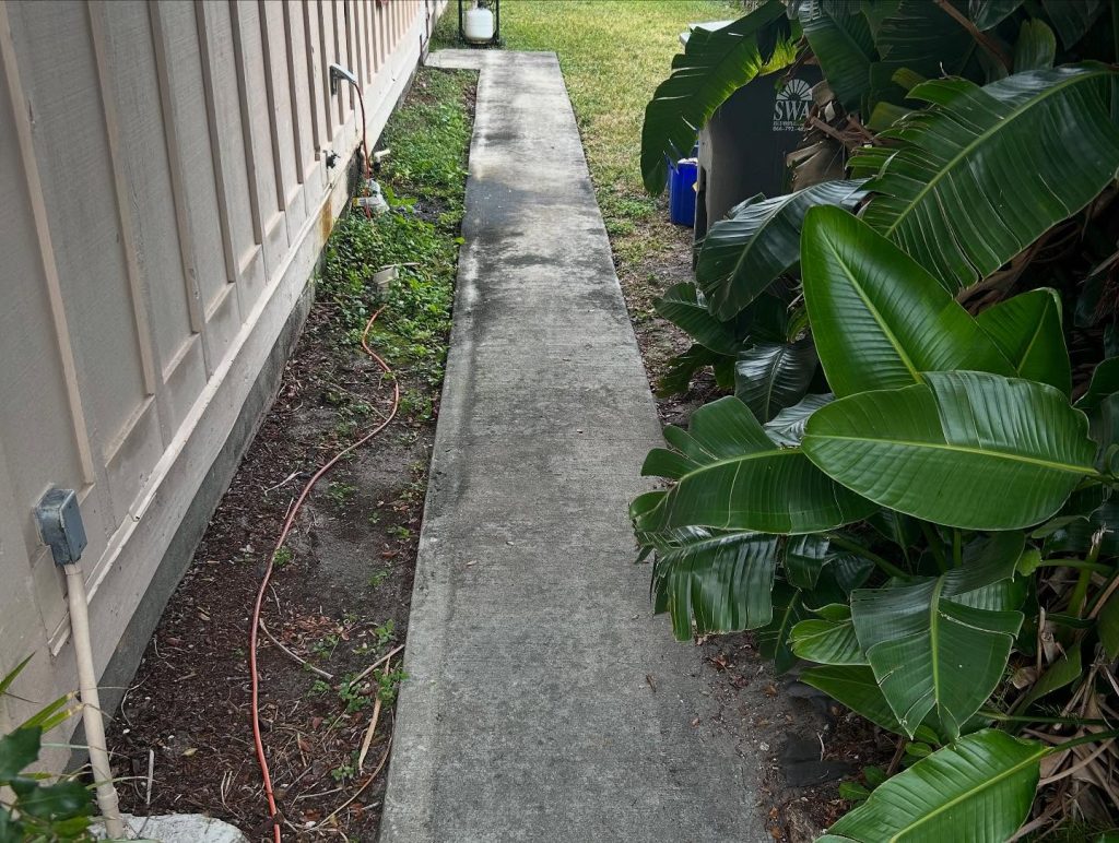Here are some before and after pictures from a driveway with a walkway that hadn’t been cleaned. The client said the algae and mould were ruining the tiles inside the house! Call or text 561-206-7800 for a free estimate.