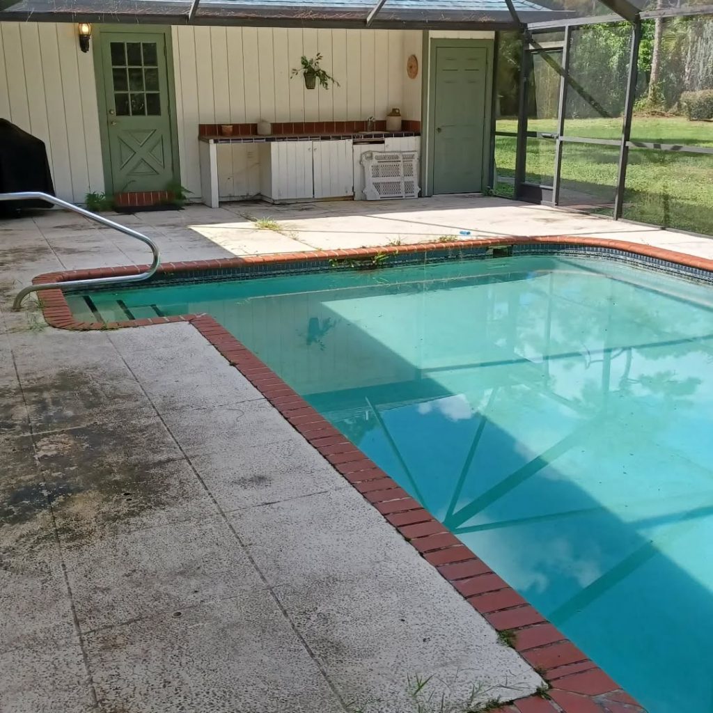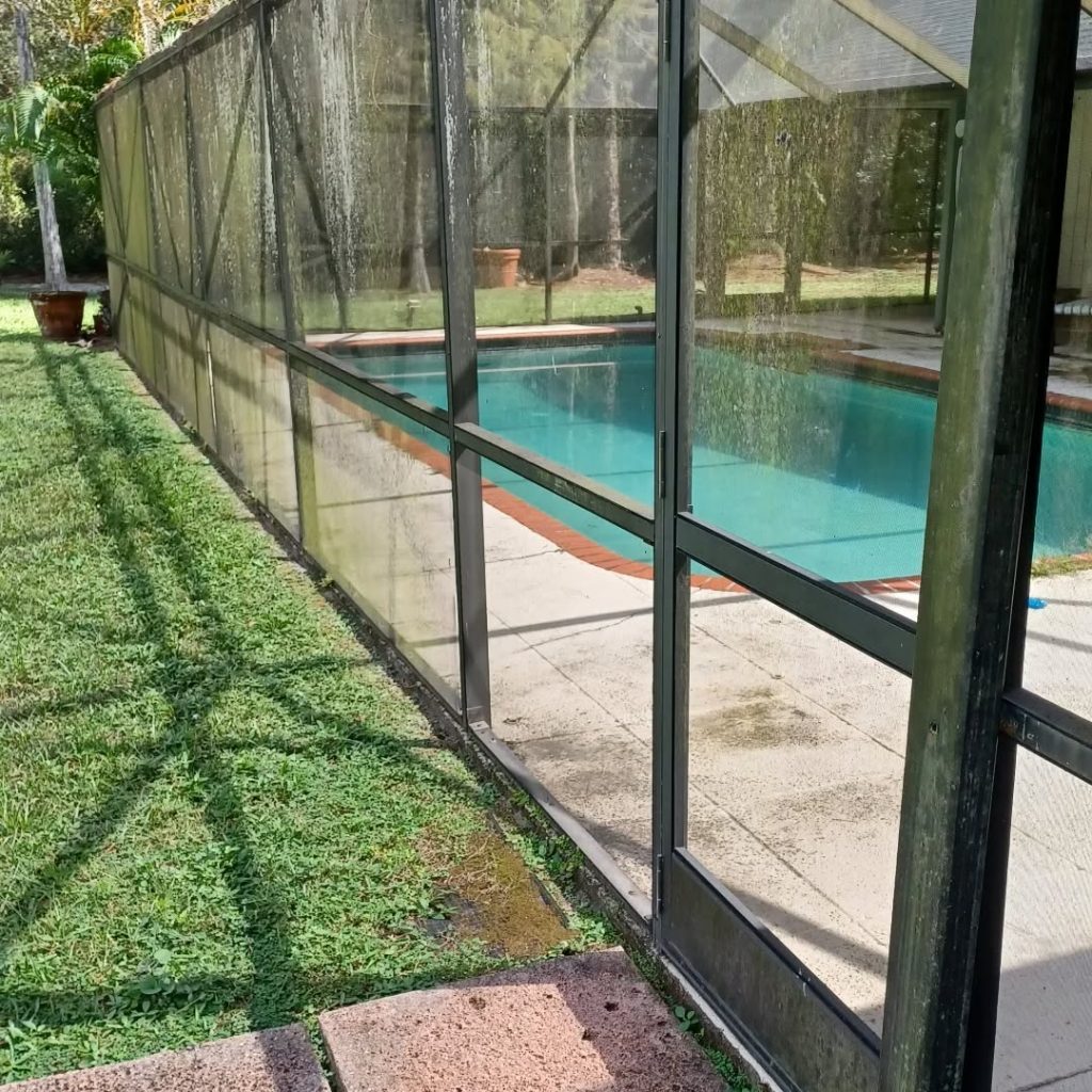 Before and After of a screen enclosure with a swimming pool. Does your backyard look like this? We can help you out with that like we did with this family!